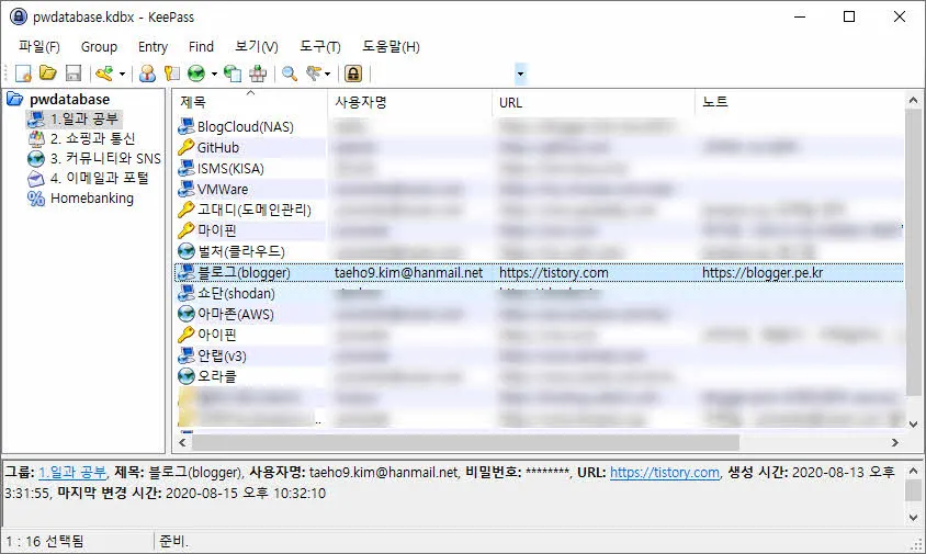 keepass에 티스토리 아이디와 비밀번호 등록하기