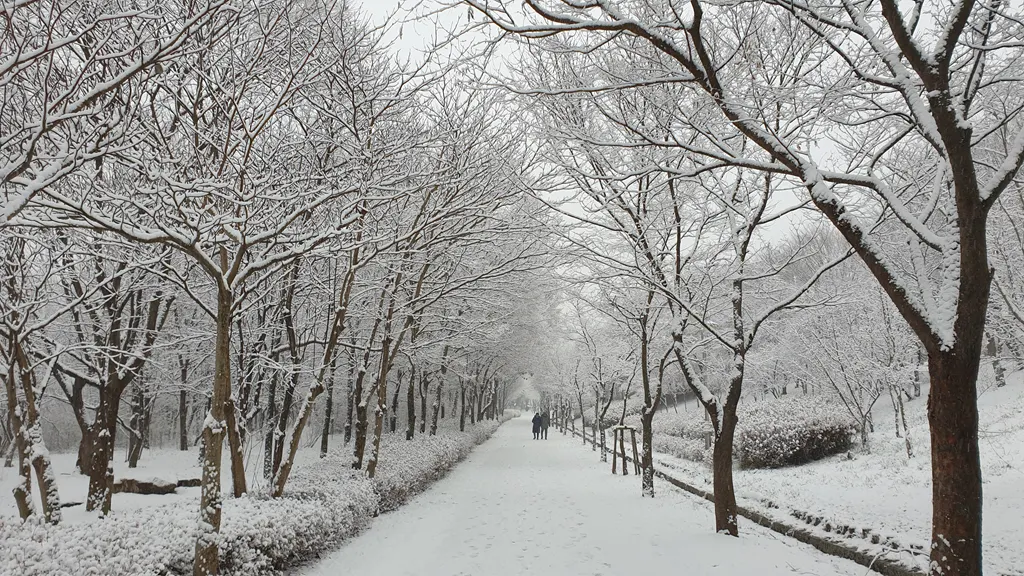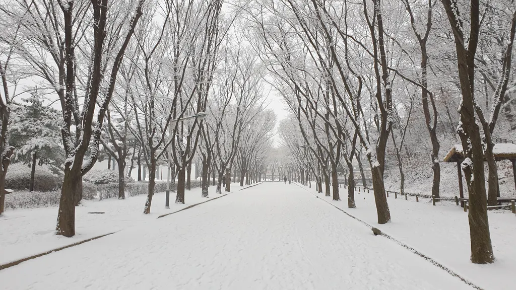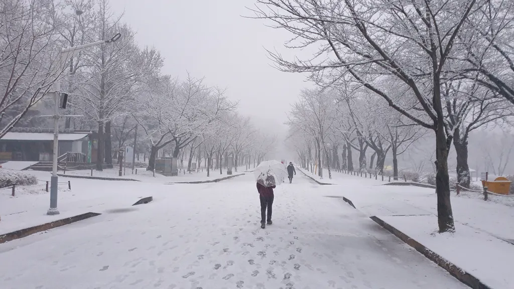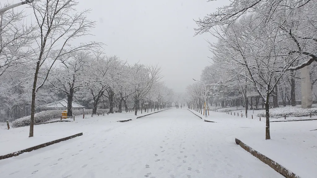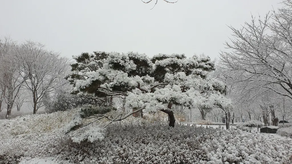 원래는 수리산의 태을봉과 수암봉을 일주하는 코스를 걸으려 했다. 그러나 이른 아침… 창밖에는 눈이 내리고 있었다. 아쉬운 대로 인천대공원 산책을 하기로 하고 우산을 챙겨 차를 몰았다. 그런데 인천대공원이 가까워질 수록 눈이 굵어지고 있었다.