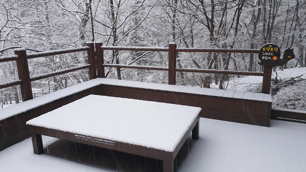 아직 걸은 사람이 많지 않은 무장애데크길은 걸을 때 마다 뽀드득 소리가 엄청나게 크게 울린다.