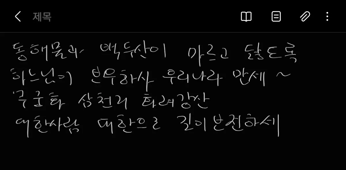 먼저 애국가의 1절을 써봤다. 좀 심하게 빠르게 쓰면서 흘려써봤다.