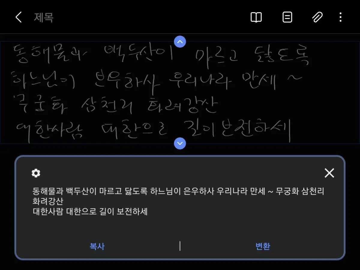 노트의 필기 내용을 텍스트로 인식하도록 동작시켰다.