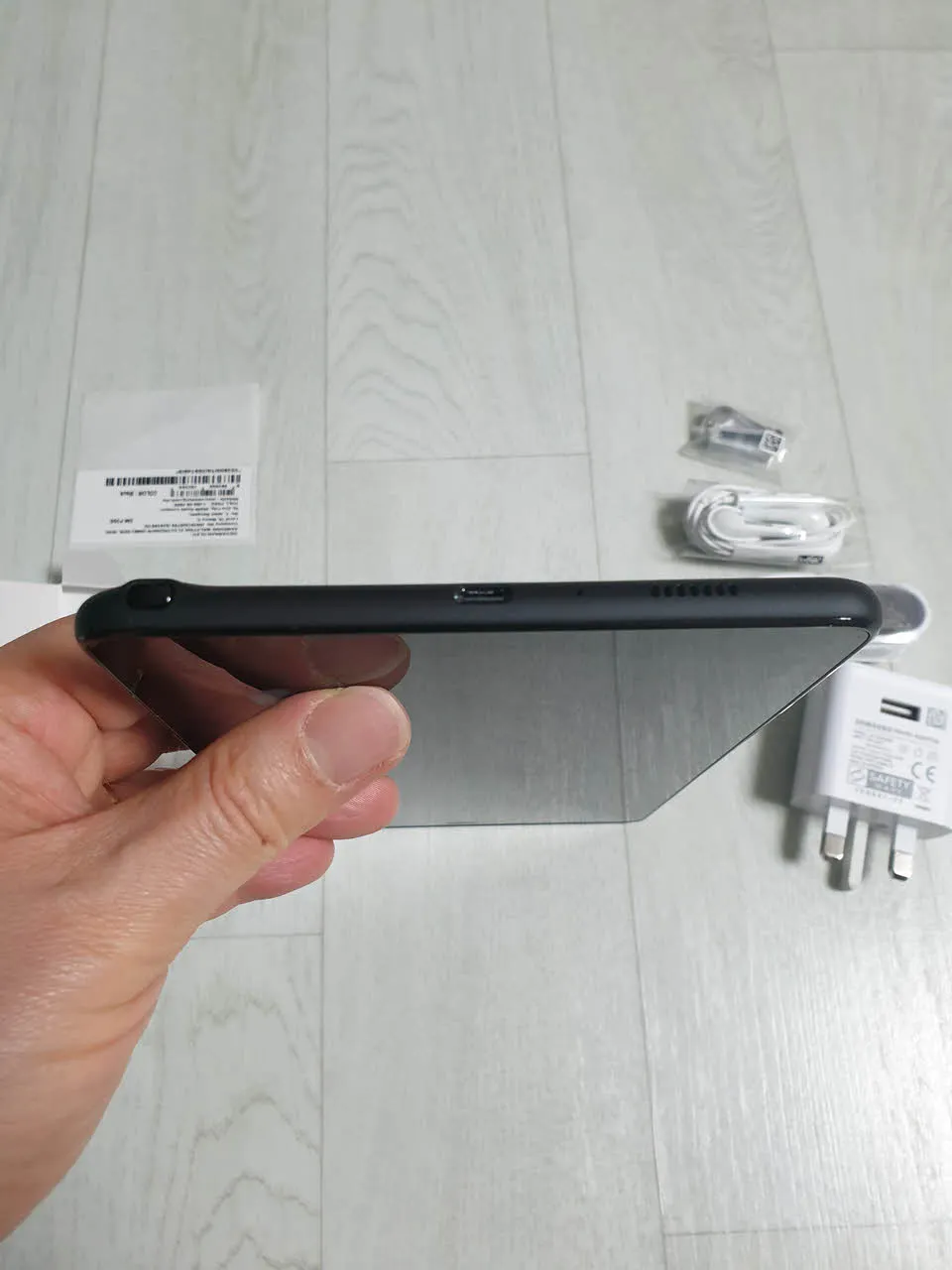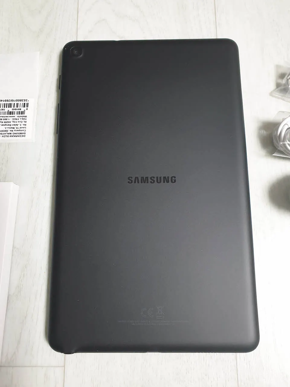 갤럭시 탭 8.0 A with S Pen (LTE / 2019)의 등판이다. 무광에 까실까실한 느낌… 그리고 미끄럽지 않아 마음에 든다.