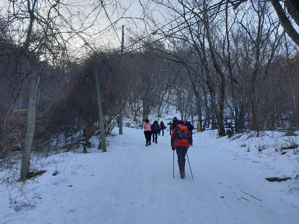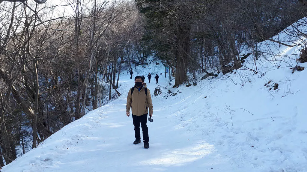 2월 중순이 가까웠지만 눈길이다. 아이젠은 필수.
