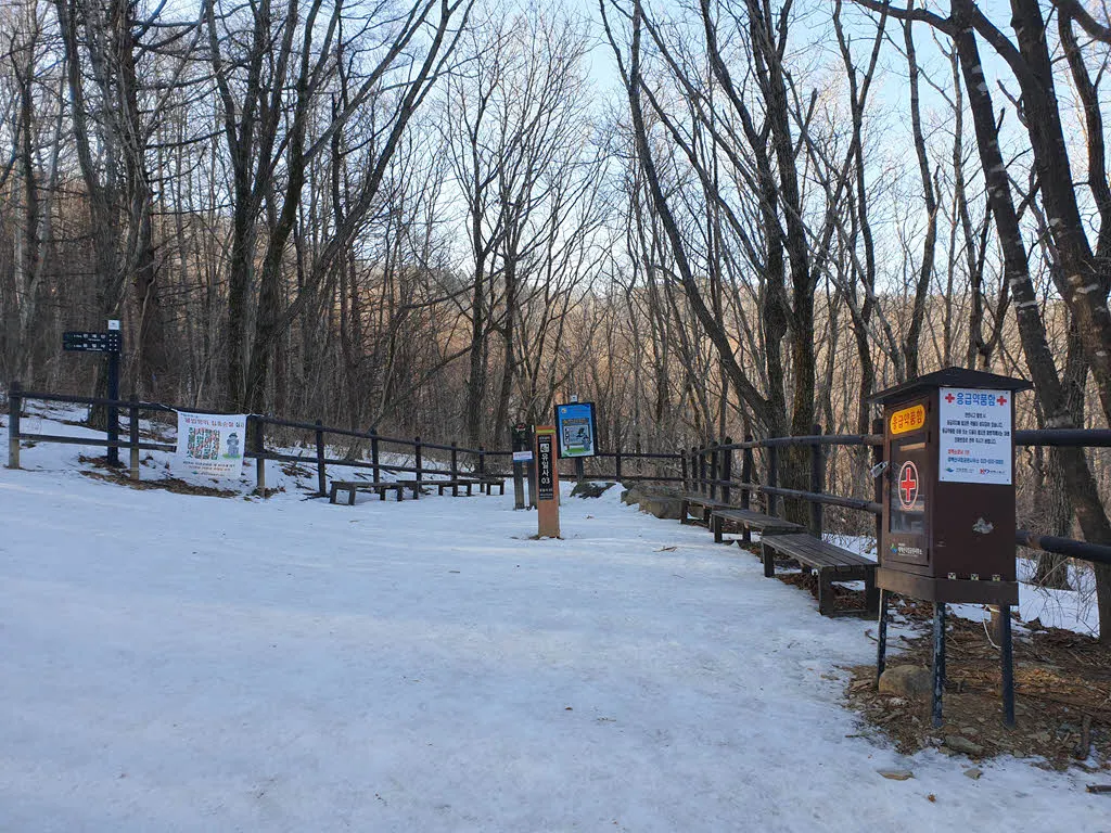 탐방로 입구는 그냥 산으로 향하는 임도다. 길가에 조금 눈이 쌓여있지만 사람들이 밟고 다닌 임도는 눈이 모두 녹아 있다.