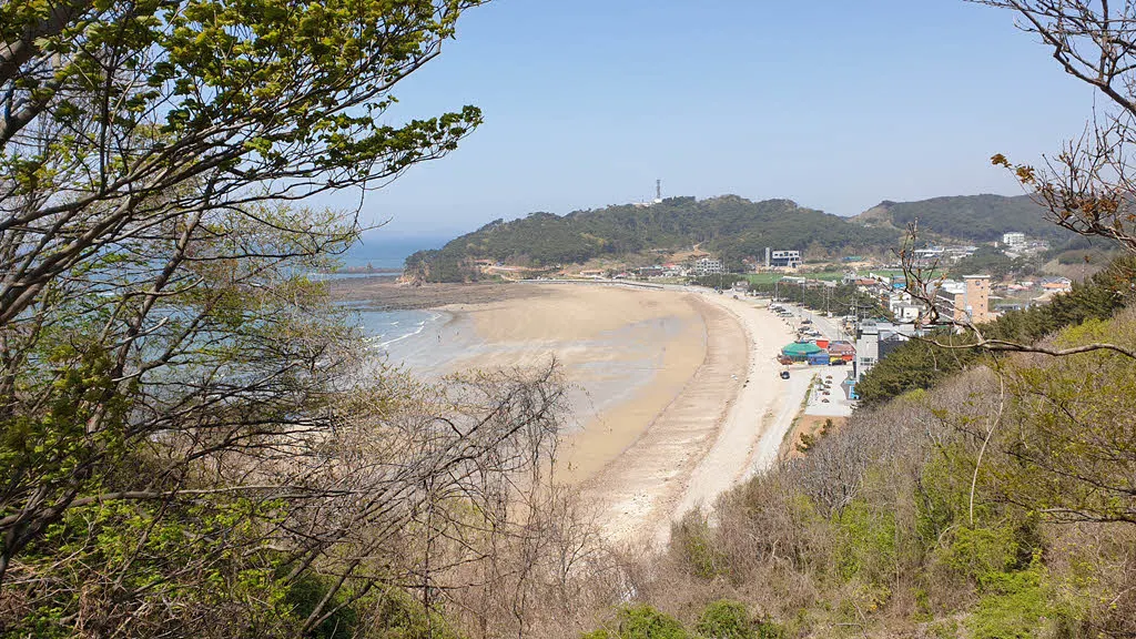 짧은 산길을 걷다보면 멀리 방포해변과 그 너머의 꽃지해변이 보인다.