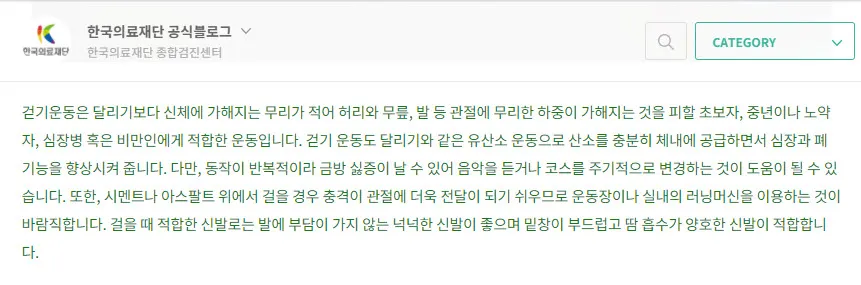 그럼에도 많은… 걷기를 찬양하는 글들에서는 달리기는 관절에 무리가 가기 때문에 건강에 좋지 않다는 분위기를 풍기며 걷기가 더 좋다고 언급한다. 그러나 평소 건강하고 출퇴근하며 걸을 때 관절이 아프지 않은 사람에게 일반적인 걷기는 운동이 되지 못하는 것이 팩트다.