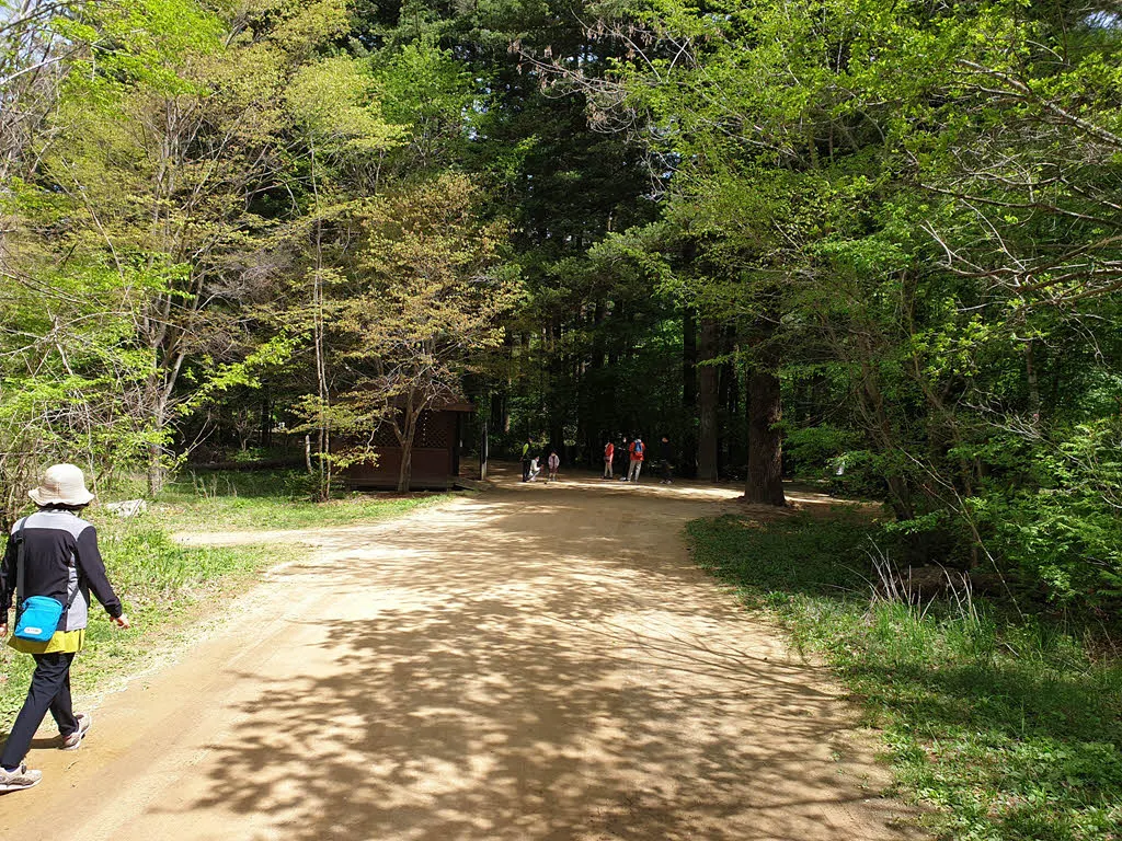 오대천 해탈교를 건너 다시 숲길로 들어선다. 해탈교를 건너기 전과는 달리 비교적 넓은 대로가 펼쳐진다. 역시 흙길이라 걷기엔 더 좋다.