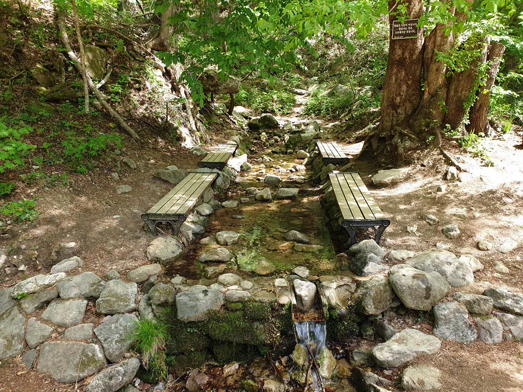 잠시 시원한 계곡물에 발을 담그고 가도 될 듯… 그런데 여름엔 자리를 차지하기 위한 경쟁이 치열할 듯.. 다음 사람을 위해 너무 긴 시간 차지하고 앉아있지는 말길… 뜨거운 물은 나오지 않는다. @.@