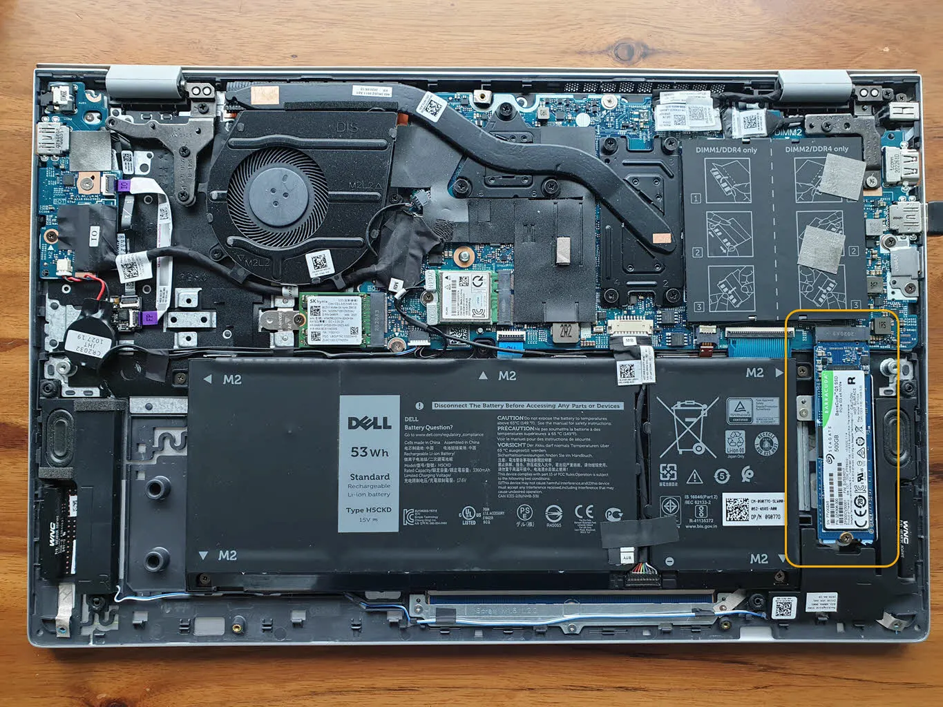 요즘 출시되는 노트북들은 기본적으로 전통적인 2.5인치 하드디스크 규격의 HDD나 SSD의 사용을 지원하지 않는다. 아예 설치가 불가한 경우가 대부분이다. 대부분 M.2 NVMe 규격의 SSD만을 지원한다. 대신 하나가 아닌 2개의 M.2 슬롯을 갖고 있는 노트북이 점점 늘고 있다. 내가 사용하는 Inspiron 15 DN5501도 2개의 M.2 NVMe 슬롯이 있다. 비어있는 슬롯에 SSD를 추가로 설치하면 보다 넓은 용량의 저장소를 확보할 수 있다.