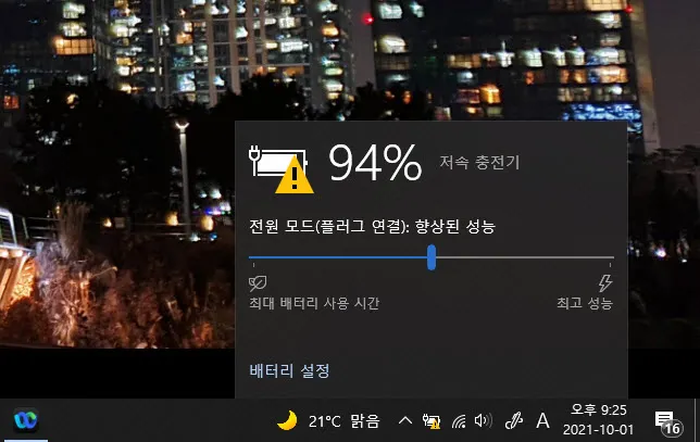 충전 상태 창에도 노랑색 느낌표가 등골을 오싹하게 만든다.