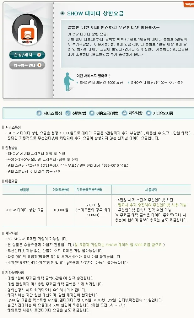 == 쇼우~ 데이터 상한 요금제.==