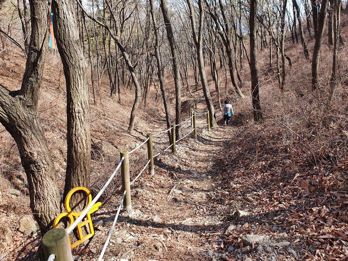 저 노랑 표지판이 가리키는 방향으로 가면 된다. 불로 약수터 사진을 찍지 못했는데 약수터를 지나면 꽤 급한 경사가 짧게 나타난다.