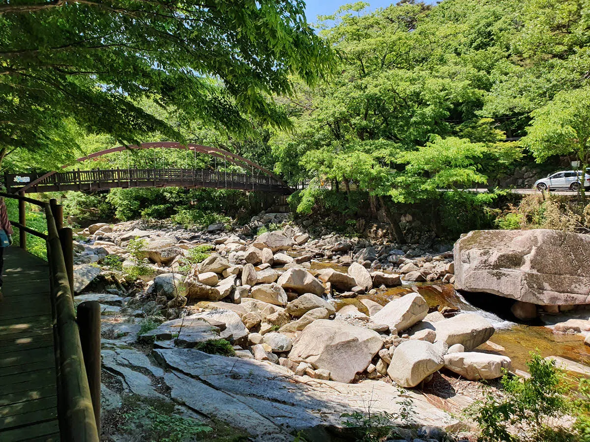 계곡과 멀어졌나 싶으면 다시 홍류동 계곡을 건너는 다리가 나온다. 홍류동 계곡을 몇번 건너야 소리길을 완주할 수 있다.