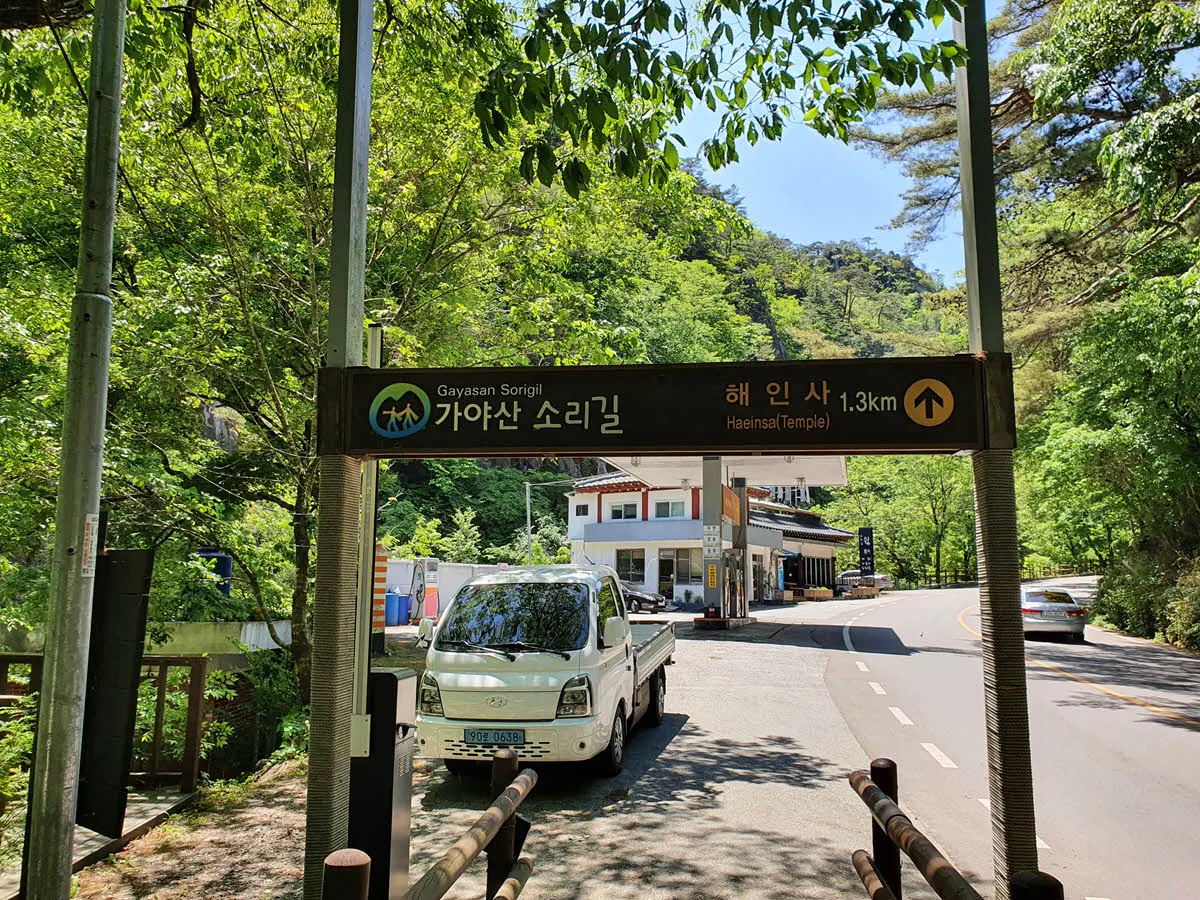 이 구간에서 해인사 홍류동매표소를 지난다. 그리고 이곳에서 “문화재 관람료”를 내야한다. 해인사에는 우리나라의 국보 중에서도 세계기록문화유산에 등재된 세계적인 문화유산이 보존되고 있다. 바로 “팔만대장경”이다.