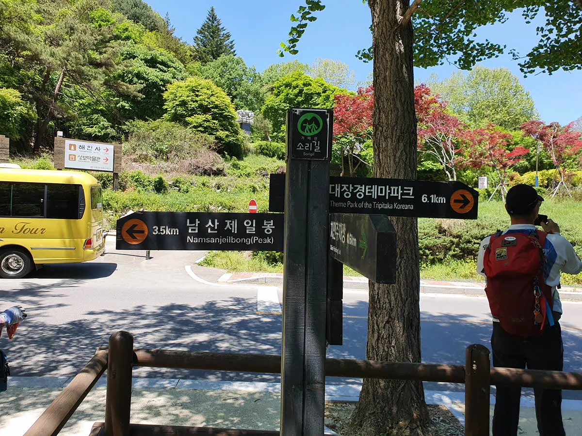 우리는 여기에서 900m 정도 떨어져 있는 해인사까지 걸어올라가 “팔만대장경”을 보러 가기로 했다.