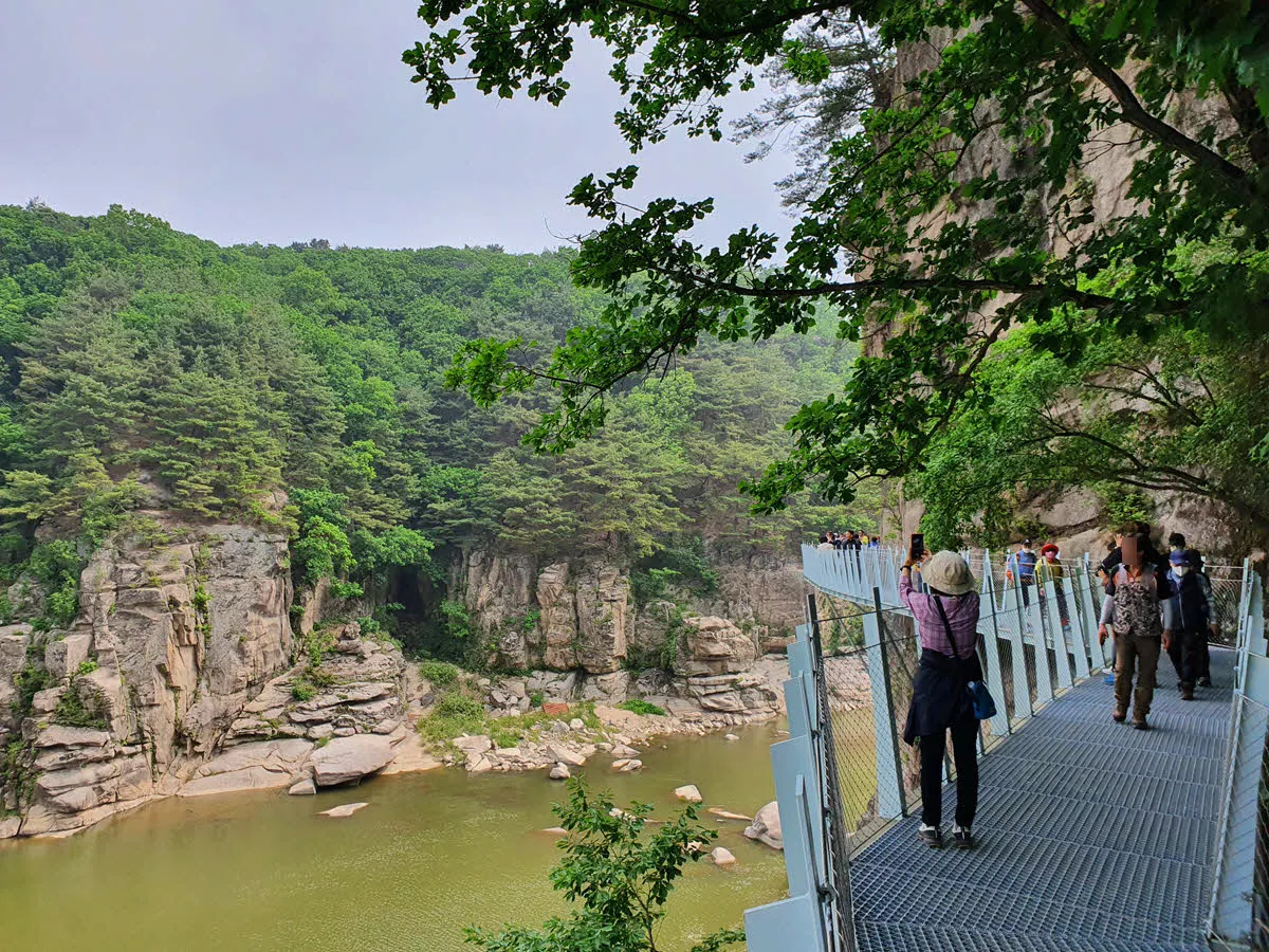 이 구간에서 공포에 떨고 있는 사람을 볼 수 있었다. 고소공포증이 꽤 심한듯 한데 가족들과 온건지 이 구간에서 더 이상 발을 떼지 못하고 두려움에 떨고 있었다. 아마도 순담계곡 쪽에서 입장한 듯 한데 가족으로 보이는 사람들이 손을 꼭 잡고 철수 여부를 고민중인 듯 했다.