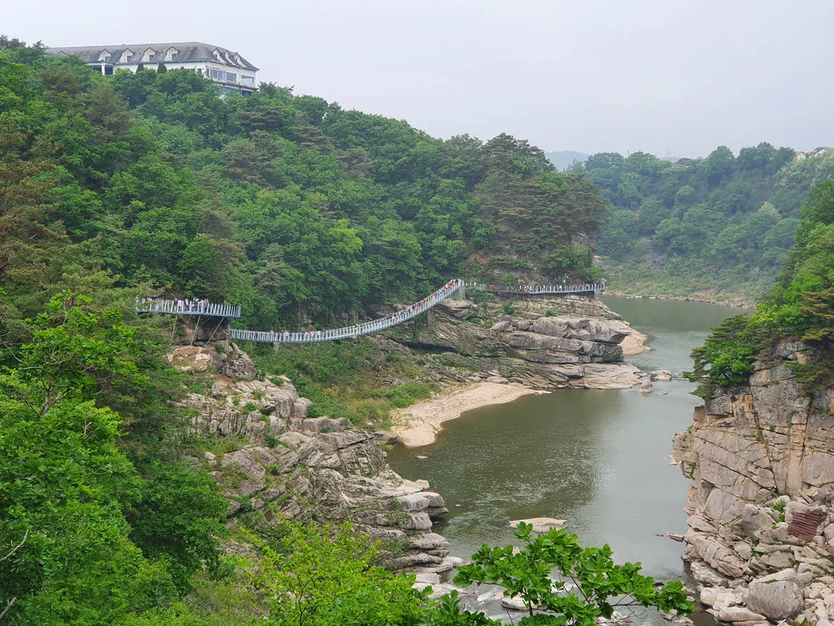 구름다리와 잔도길과 스카이워크를 지나다 보면 어느새 순담계곡이 보인다. 순담계곡은 한겨울 얼음트래킹을 할 수 있는 물윗길의 시작점 또는 종점이기도 하다.